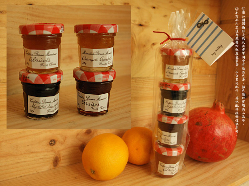 內容:杏子果醬、藍莓果醬、 草莓果醬、橘子果醬