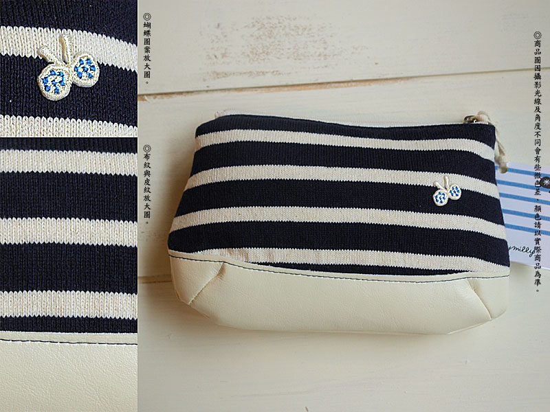 品名:藍條紋皮製小包