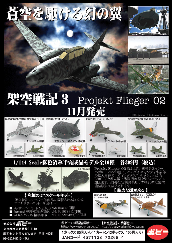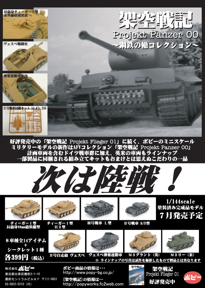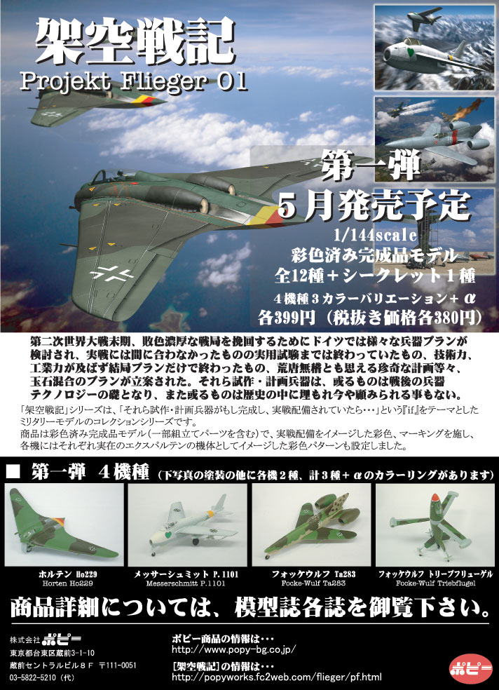 POPY出版的架空戰記也是站長很喜歡的收藏之一,塗裝相當精細,主題的取材也都與其他廠商不同,本系列以二戰1945年未完成的戰術兵器為主,如果這些終極武器能在1943年量產,那二戰的結局將會大大不同,這些武器新穎的造型及設計理念都讓人驚異。 ※站長介紹之玩具純為個人興趣收藏,並非為提供銷售行為之用,如欲收藏或購買就上拍賣網站自己去碰碰運氣吧!盒玩-軍事武器。